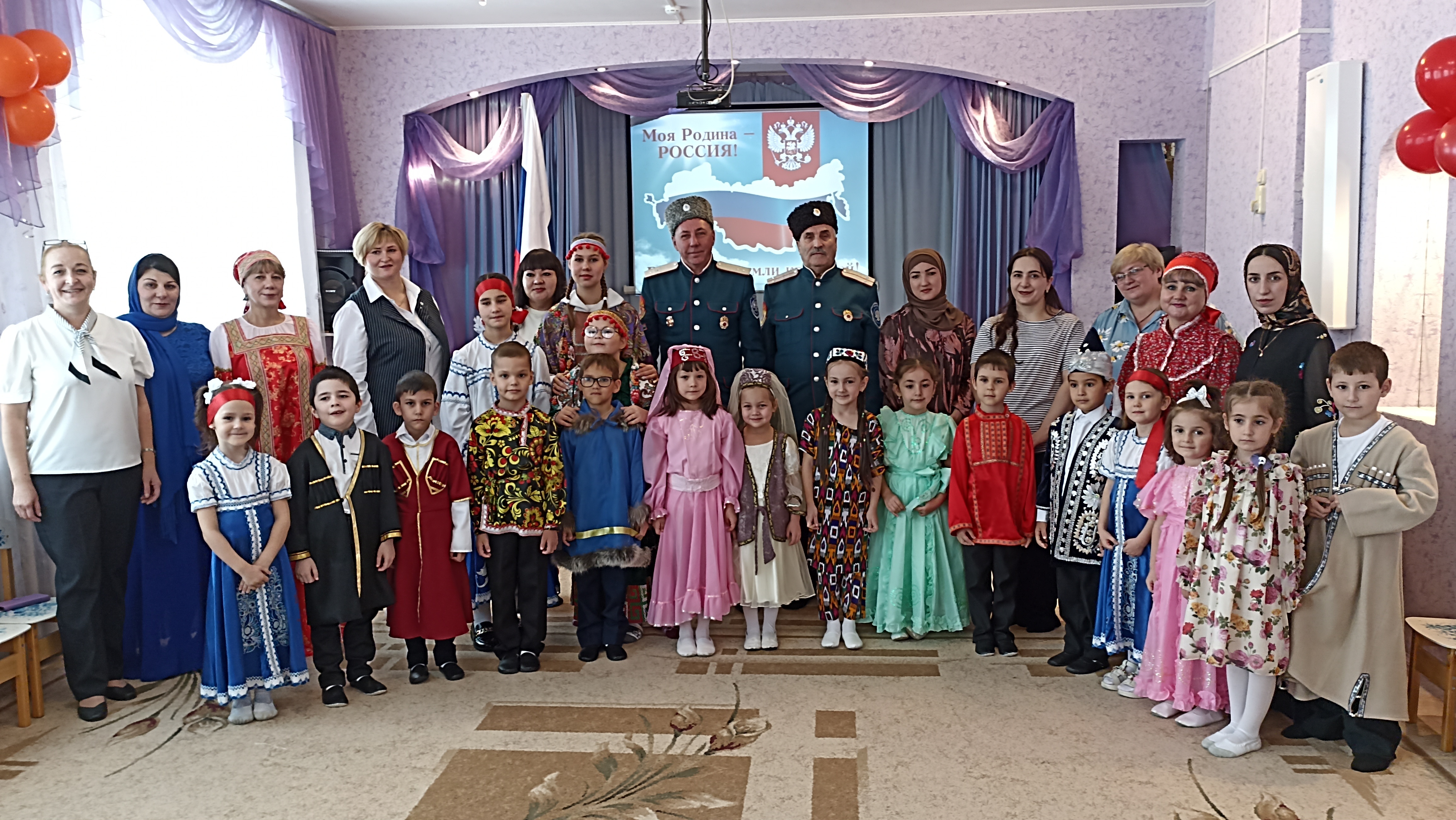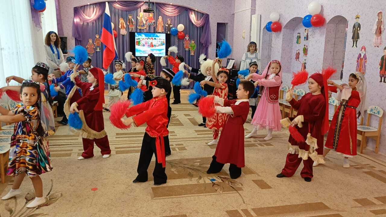 Ежегодно в ДОУ проводится праздник, посвященный Дню народного единства. Традиционно дети представляют свои национальные костюмы: русские, татарские, башкирские, костюмы народов Дагестана и т.д., в зависимости от национального состава группы. Ежегодно мамы приходят на праздник с национальными блюдами. На празднике дети рассказывают о своей национальности, читают стихи о красотах своего родного края, исполняют национальные песни и танцы. И все вместе играют в различные национальные игры. Таким образом, воспитывается уважение к традициям народов России, чувство гордости за нашу многонациональную Родину, желание жить в мире и дружбе.